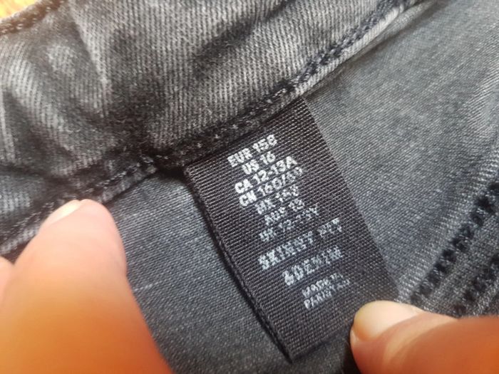 Taille 158 Coupe skinny fit, couleur noir délavé. Élastiques réglables à la taille. En très bon état.