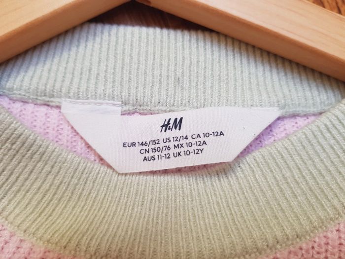 Taille 146/152 Couleurs pastels pour ce pull en maille. En très bon état.