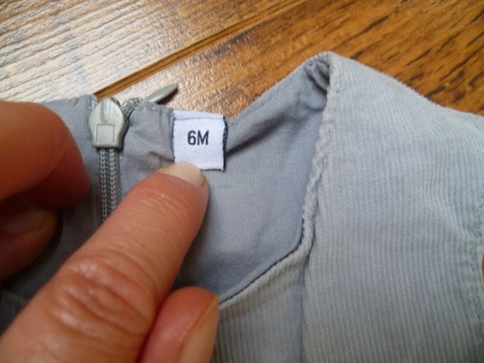 Taille 6 mois Tissu velours milleraies Fermeture éclair au dos s'ouvrant à mi-hauteur Noeud décoratif sur le devant Très bon état