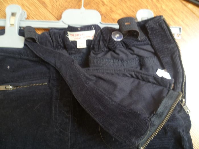 Taille 10 ans En velours milleraies Fermeture zippée sur le côté gauche, taille réglable avec élastique 2 fausses poches zippées sur le devant Jamais porté