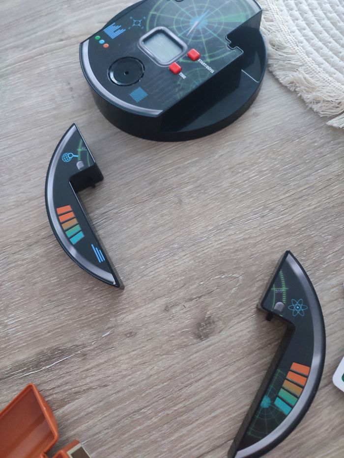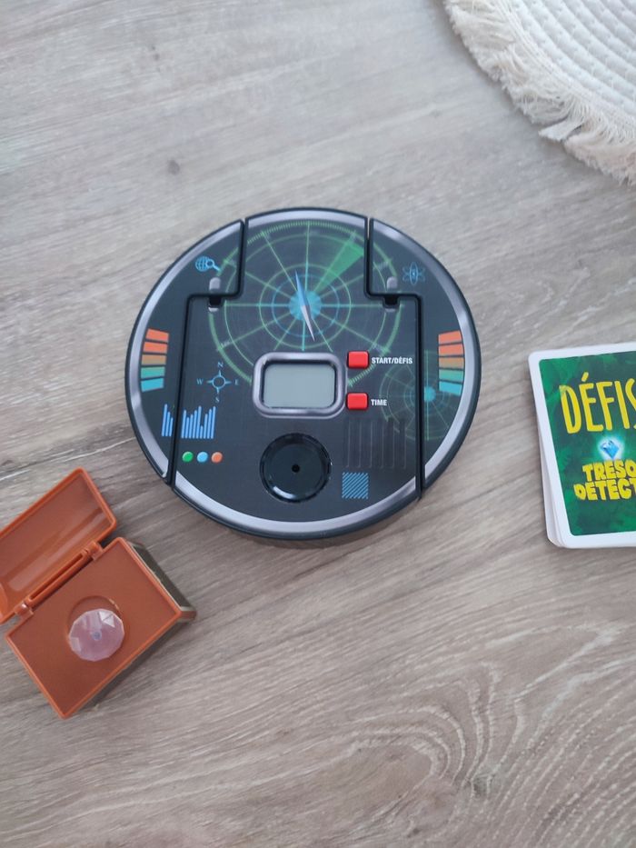 TRESOR DETECTOR Description Embarque avec tes amis pour la plus grande chasse au trésor des temps modernes ! Une équipe cache les 2 clés et le trésor. L’autre équipe part à leur recherche grâce au détecteur… Vite, le chrono tourne ! 1 - Un équipe cache les clés et le diamant, l'autre équipe doit les retrouver ! 2 - Suis les indications de ton détecteur : plus les barres augmentent, plus tu chauffes ! 3 - Retrouve d'abord les clés. Une fois assemblées au détecteur, elles activent la recherche du diamant ! 4 - Clipse le diamant sur le détecteur, avant qu'il ne soit trop tard ! Bonus : Des défis pour pimenter la partie !!vendu sans la boîte!!