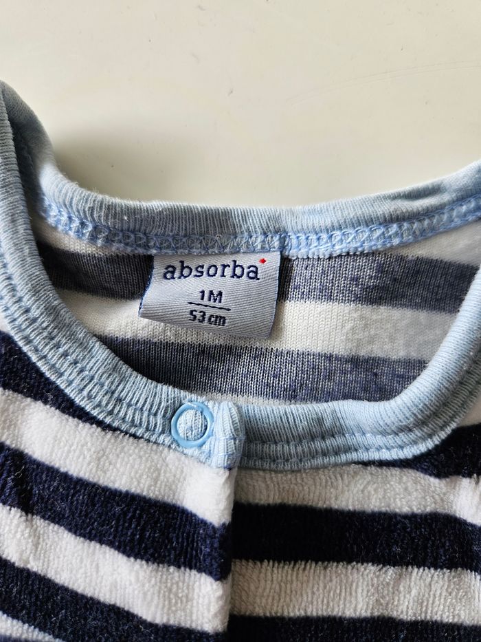 Grenouillère/ pyjama absorba en velours Marinière motif baleine Ouverture pont idéale naissance Taille 1 mois 53 cm En bon état, velours encore doux