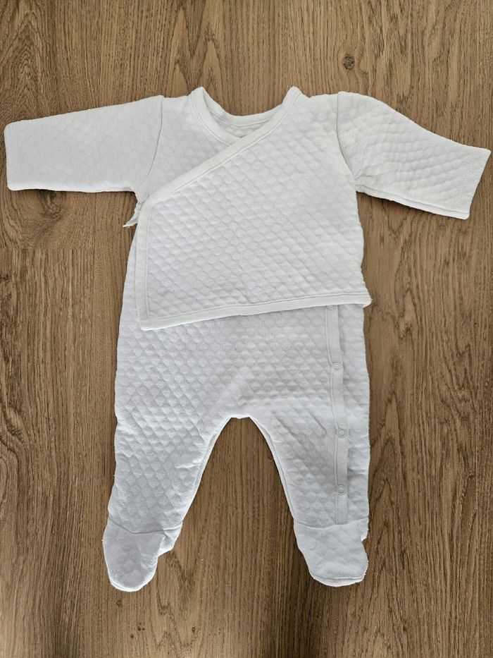 Grenouillère / pyjama portefeuille absorba Blanc "Nid d'abeille" Taille 3 mois 56 cm En bon état