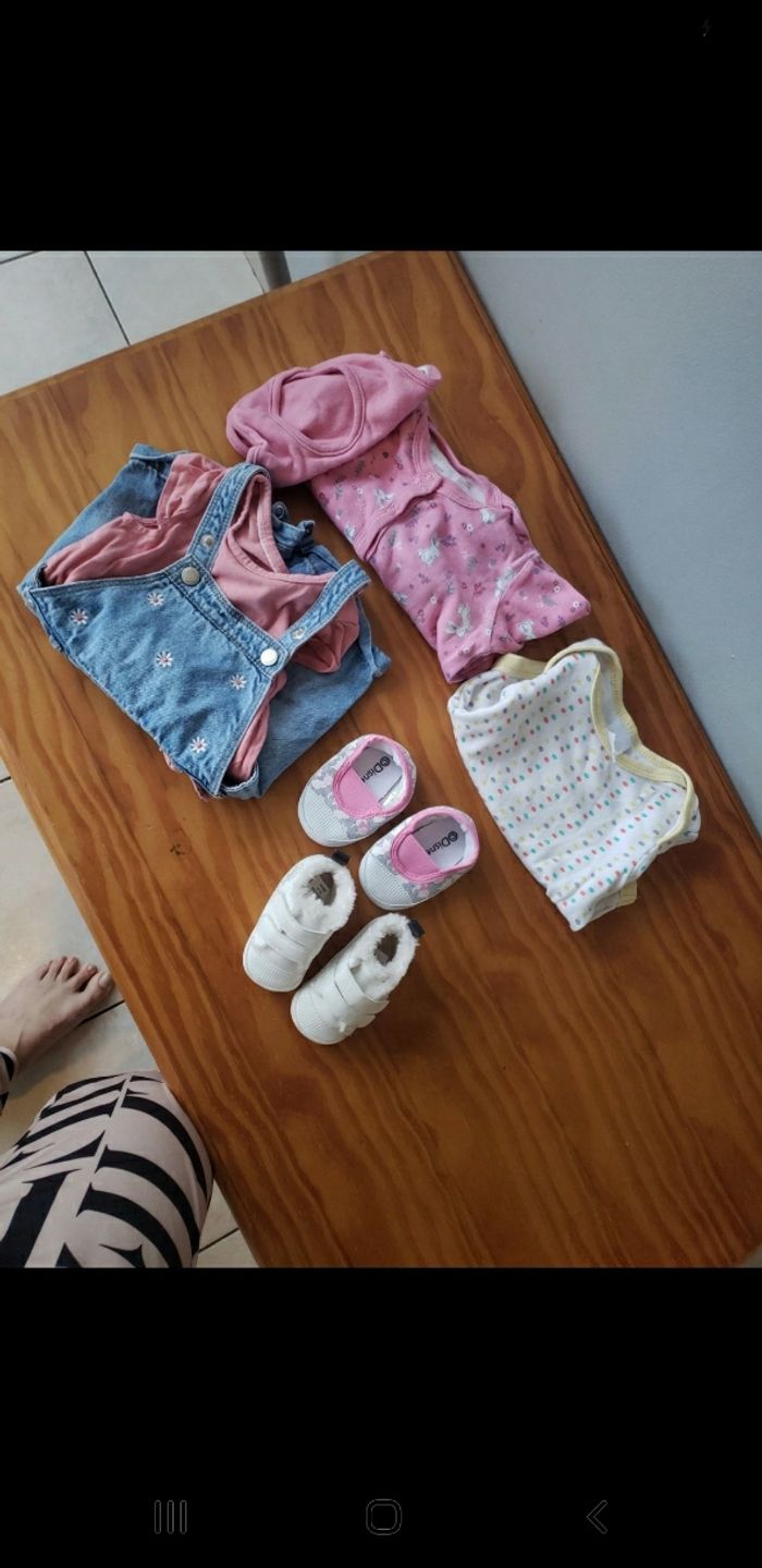 Un pyjama avec bavoir 1 salopette avec son tee shirt 1 bodie manche courte 2 paire de chaussure