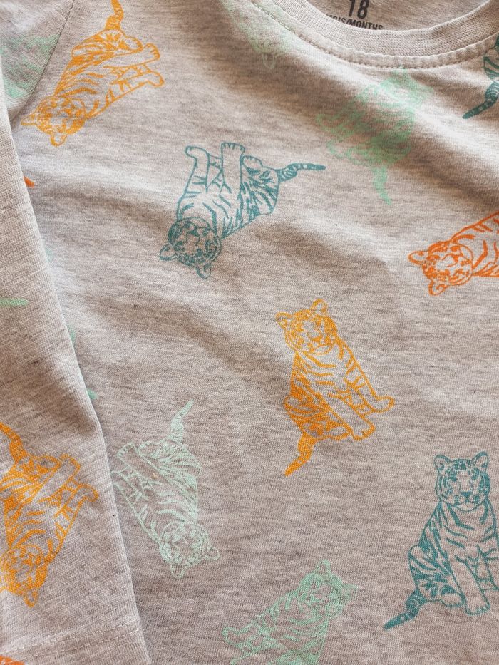 Tee-shirt Orchestra Taille 18 mois Coloris gris avec motifs tigre 🐅 2 pressions Très bon état