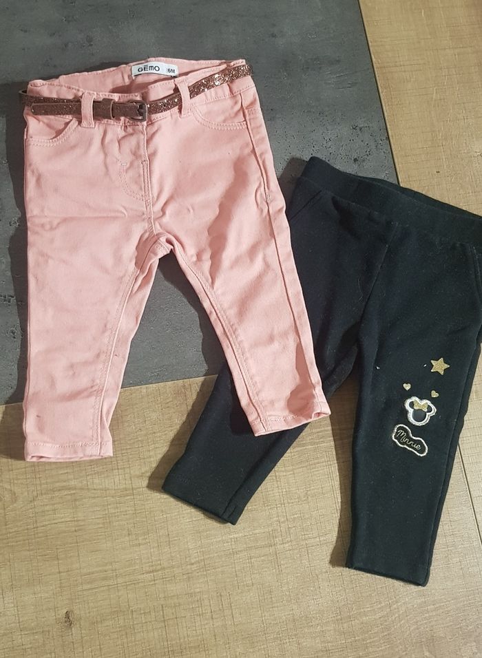 Jean rose avec petite ceinture marron de la marque Orchestra, tout neuf jamais porté. Un legging noir, chaud, de la marque Orchestra, très bon état. Taille 6 mois.