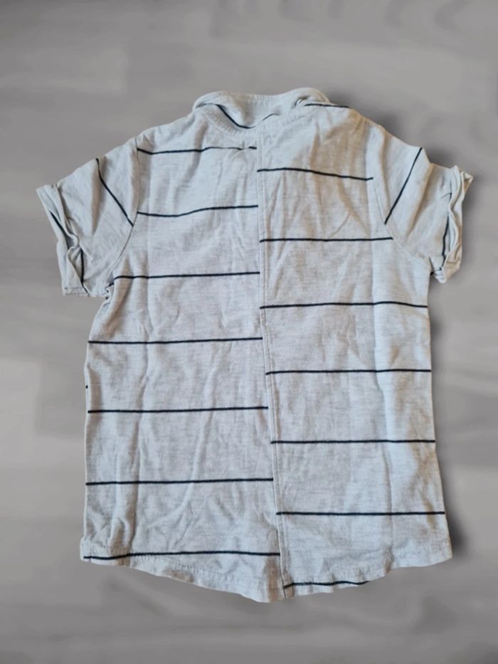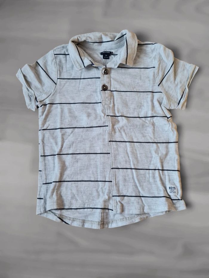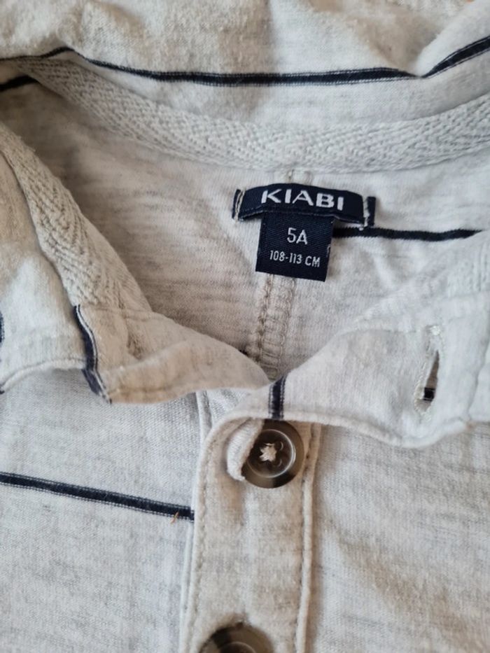 T-shirt polo manches courtes taille 5 ans Kiabi. Gris/beige chiné avec fines rayures bleu marine. Très bon état. Tous mes articles sont lavés avant la vente. J'ai beaucoup d'articles donc n'hésitez pas à utiliser les filtres sur mon dressing pour trouver votre bonheur, faire des lots et profiter de réductions ! 😊