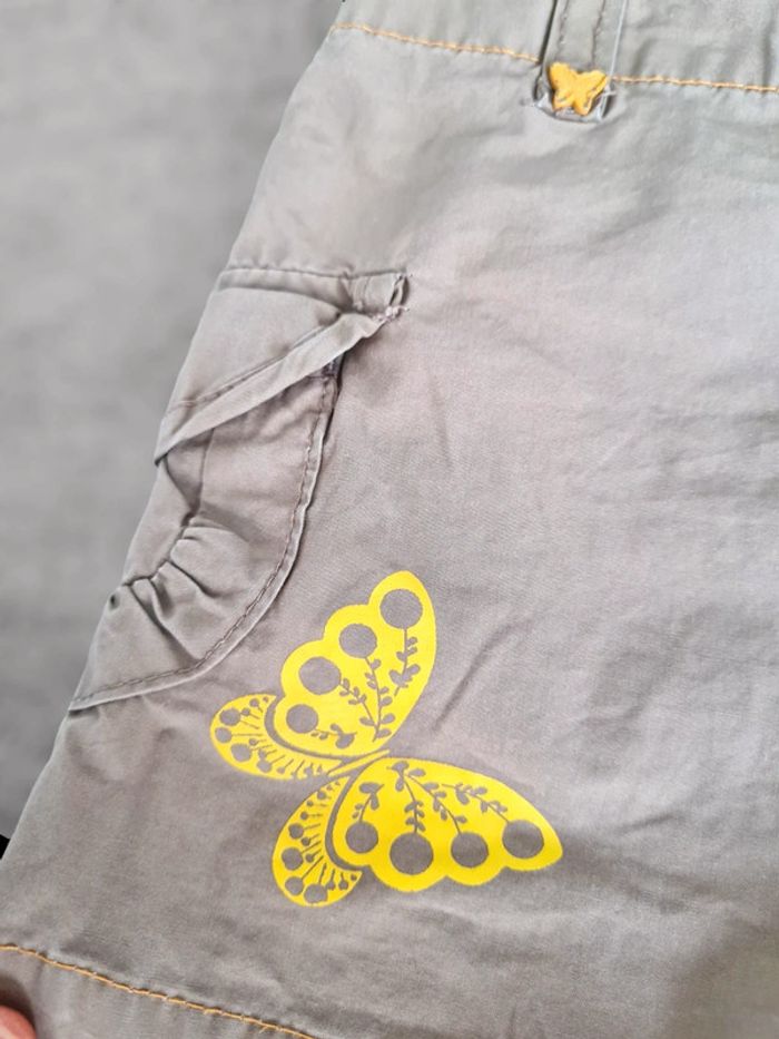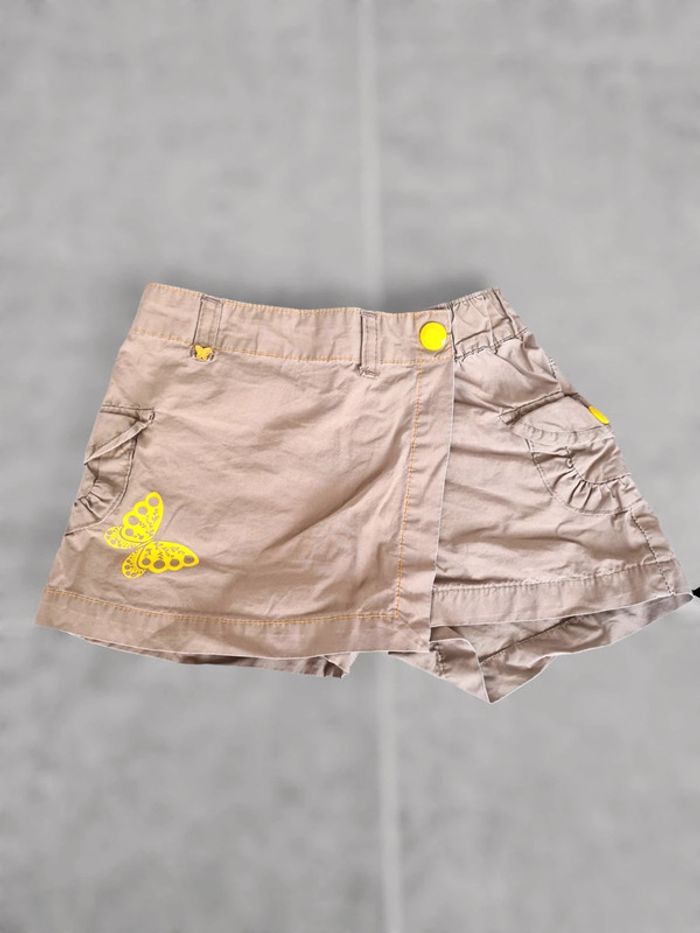 Short fille style jupe short 3 ans Vertbaudet. Beige/taupe avec papillons jaune. Short et petit "rabat" qui se fixe avec pression sur le devant. Très mignon. Très bon état.