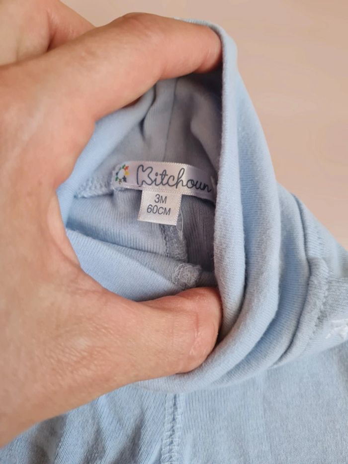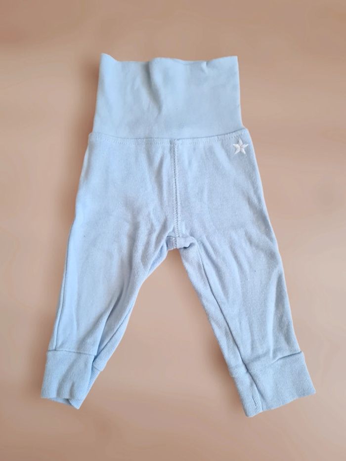 Pantalon type leggings bleu clair avec petite étoile blanche, taille 3 mois Kitchoun. Grosse bande "ceinture " pour remonter bien haut et ne pas serrer le ventre. Neuf (on dirait qu'il est jauni sur les photos mais ça vient de la luminosité). Tous mes articles sont lavés avant la vente. N'hésitez pas à consulter mon dressing pour faire des lots et profiter de réductions !