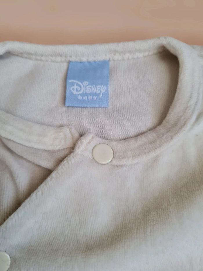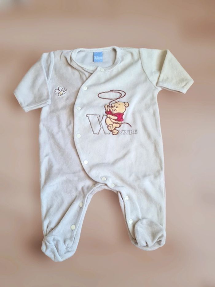 Grenouillère garçon Disney Winnie l'Ourson. En velours épais, chaude. Taille 3 mois. Beige avec broderies devant. Pressions sur l'avant et entrejambe. Très bon état mais il manque la 1ère pression au niveau du col. Tous mes articles sont lavés avant la vente. Réductions sur lots activés!