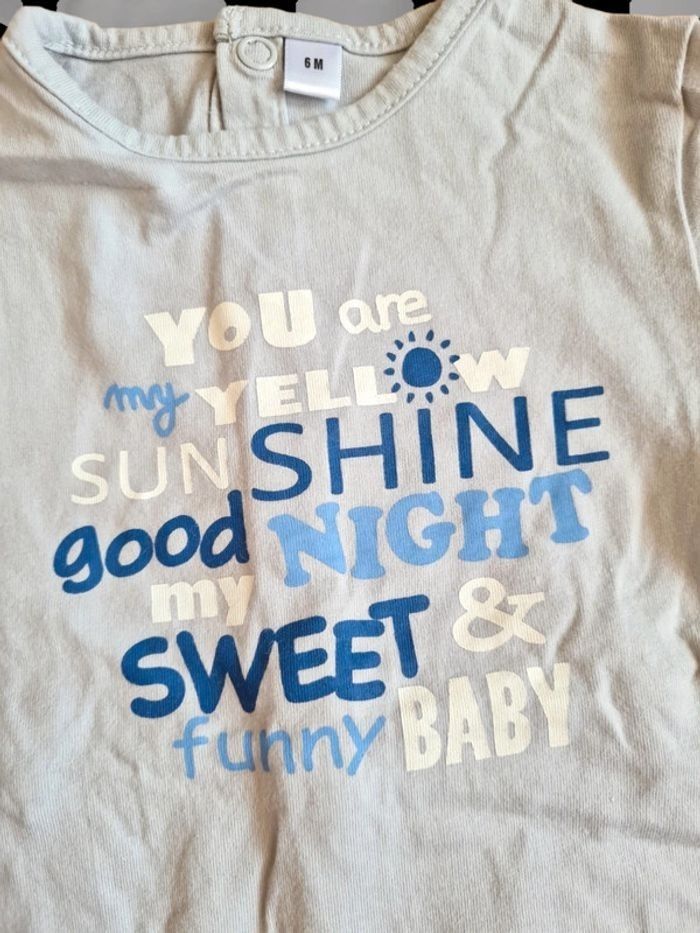 Grenouillère fine en coton marque Tex 6 mois. Grise avec inscriptions bleues et blanches. Peut être mixte . Comme neuve Tous mes articles sont lavés avant la vente. J'ai beaucoup d'articles donc n'hésitez pas à utiliser les filtres sur mon dressing pour trouver votre bonheur, faire des lots et profiter de réductions ! 😊