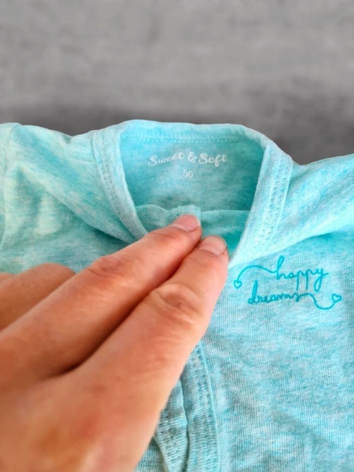 Grenouillère légere en coton (Jersey) marque Sweet and Soft taille naissance (mais taille grand, bien 2- 3 mois je pense). Couleur menthe/turquoise, pressionnée devant et entre-jambes. Mixte Neuve, jamais portée (du fait qu'elle taille grand...). Tous mes articles sont lavés avant la vente. J'ai beaucoup d'articles donc n'hésitez pas à utiliser les filtres sur mon dressing pour trouver votre bonheur, faire des lots et profiter de réductions ! 😊