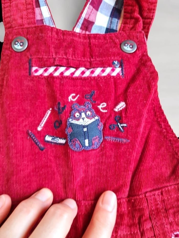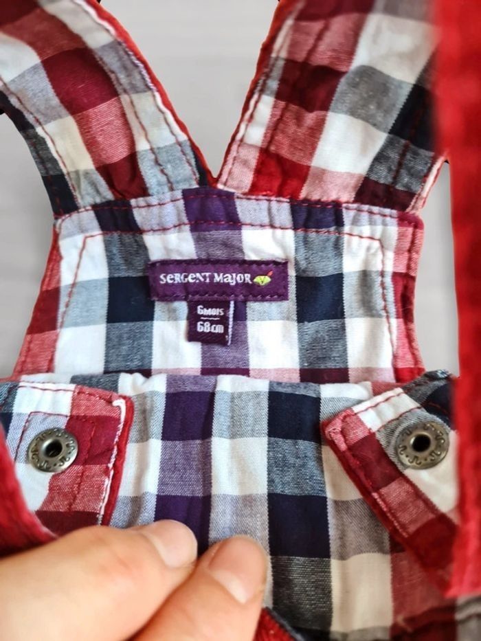 Salopette en velours finement côtelé. Marque Sergent Major 6 mois. Rouge avec liserés à carreaux rouges et blancs. Patch et broderies sur le devant, détails boutons. Peut être pour garçon ou fille. 2 positions possibles pour bretelles, entre-jambes pressionné. Neuve, jamais portée, juste lavée. Tous mes articles sont lavés avant la vente. Maison non fumeur J'ai beaucoup d'articles donc n'hésitez pas à utiliser les filtres sur mon dressing pour trouver votre bonheur, faire des lots et profiter de réductions ! 😊