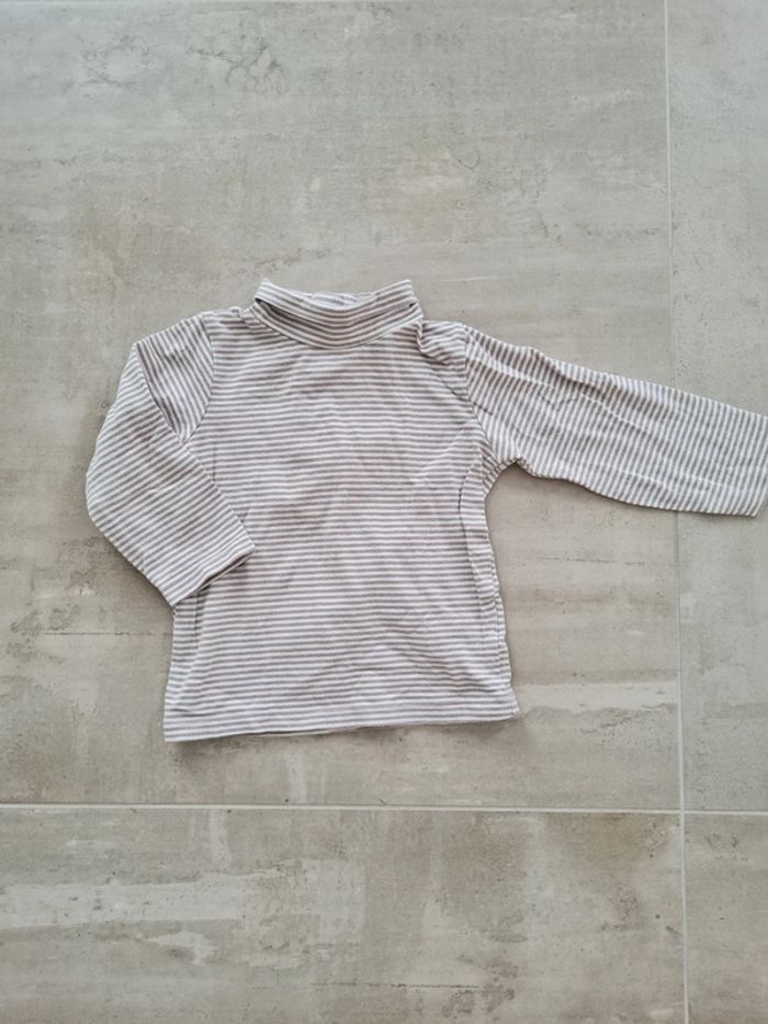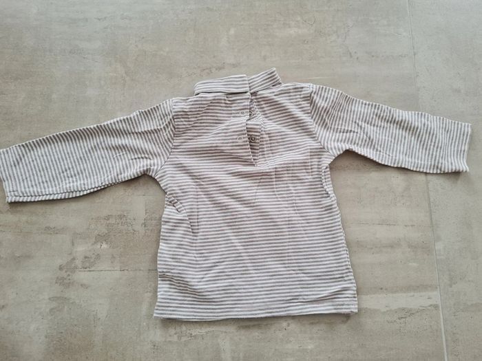 Sous-pull t-shirt manches longues col roulé Vertbaudet 12 mois. Rayé taupe et blanc, entièrement pressionné au dos. Mixte. Excellent état. Tous mes articles sont lavés avant la vente. J'ai beaucoup d'articles donc n'hésitez pas à utiliser les filtres sur mon dressing pour trouver votre bonheur, faire des lots et profiter de réductions ! 😊 - 10% dès 3 articles 👗👚🩱 - 20% dès 5 articles 👡👙🧥👖👢
