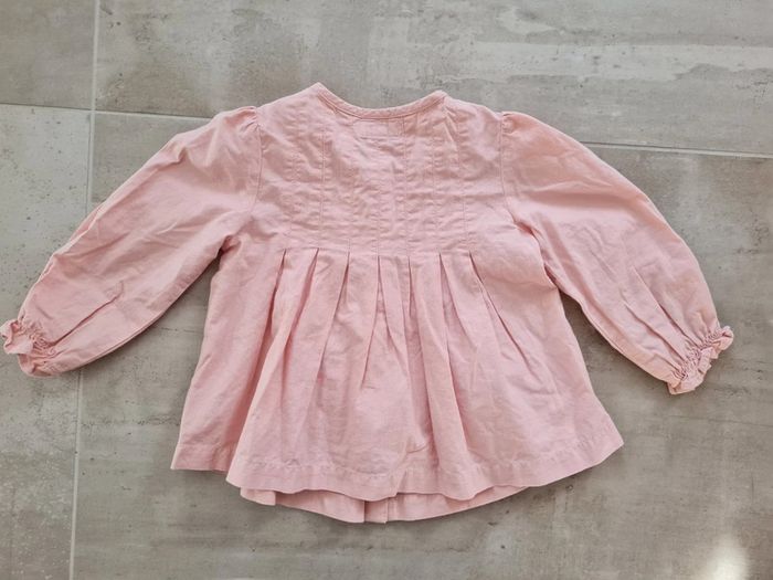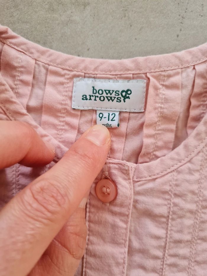 Chemisier type blouse taille 9-12 mois marque Bows & Arrows (marque anglaise). Rose clair, évasé, manches assez larges resserrées aux poignets, surpiqûres sur avant et arrière. Neuf, jamais porté. Tous mes articles sont lavés avant la vente. J'ai beaucoup d'articles donc n'hésitez pas à utiliser les filtres sur mon dressing pour trouver votre bonheur, faire des lots et profiter de réductions ! 😊 - 10% dès 3 articles 👗👚🩱 - 20% dès 5 articles 👡👙🧥👖👢