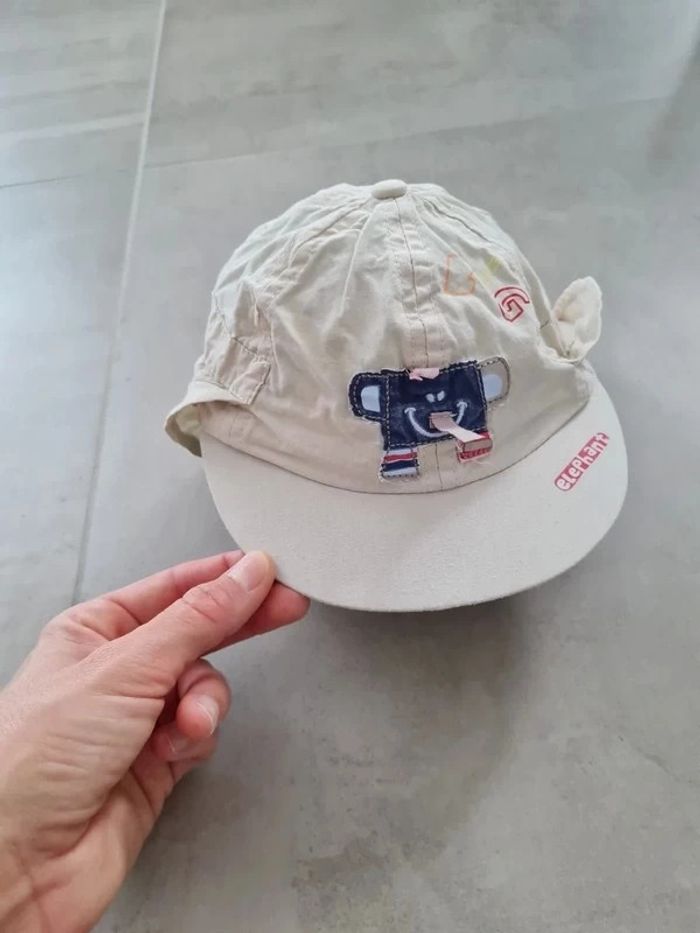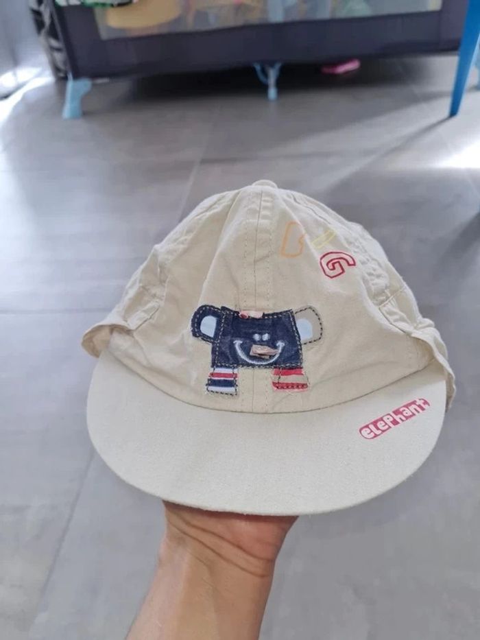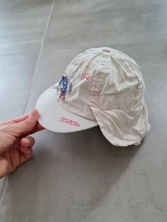 Casquette avec cache nuque beige avec motif éléphant dessus. Neuve, taille 45 (soit environ 6-9 mois). Tous mes articles sont lavés avant la vente. J'ai beaucoup d'articles donc n'hésitez pas à utiliser les filtres sur mon dressing pour trouver votre bonheur, faire des lots et profiter de réductions ! 😊 - 10% dès 3 articles 👗👚🩱 - 20% dès 5 articles 👡👙🧥👖👢
