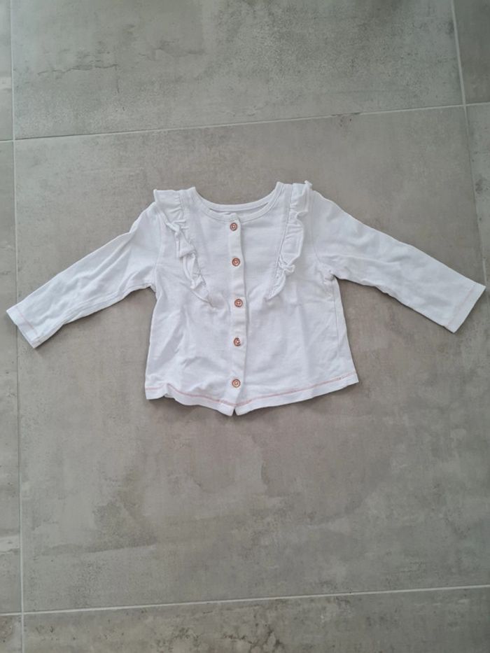 Gilet blanc léger en coton marque Orchestra. Volants descendant sur poitrine et dans dos. Boutons cuivre et liseré rose en bas. Taille 9 mois. Excellent état. Tous mes articles sont lavés avant la vente. J'ai beaucoup d'articles donc n'hésitez pas à utiliser les filtres sur mon dressing pour trouver votre bonheur, faire des lots et profiter de réductions ! 😊 - 10% dès 3 articles 👗👚🩱 - 20% dès 5 articles 👡👙🧥👖👢