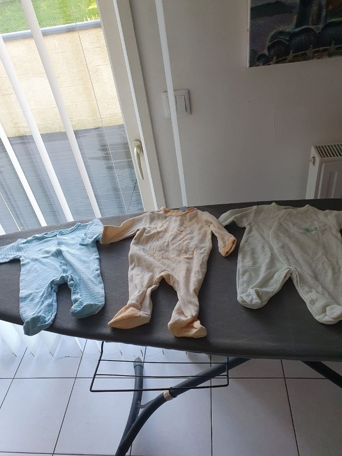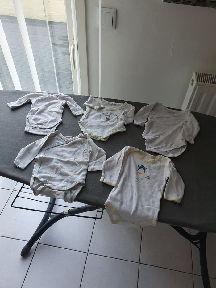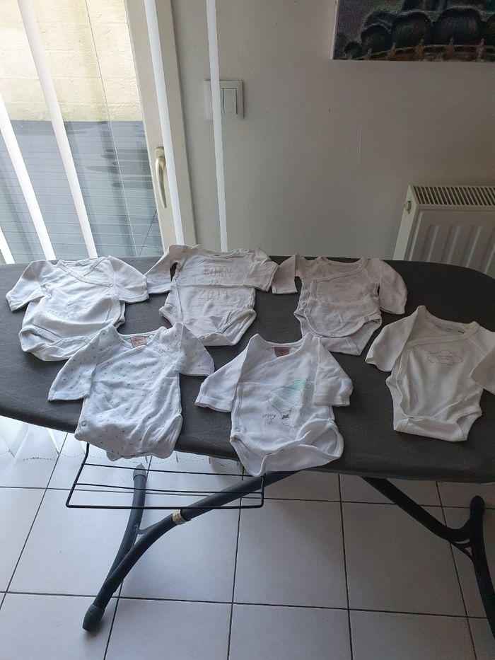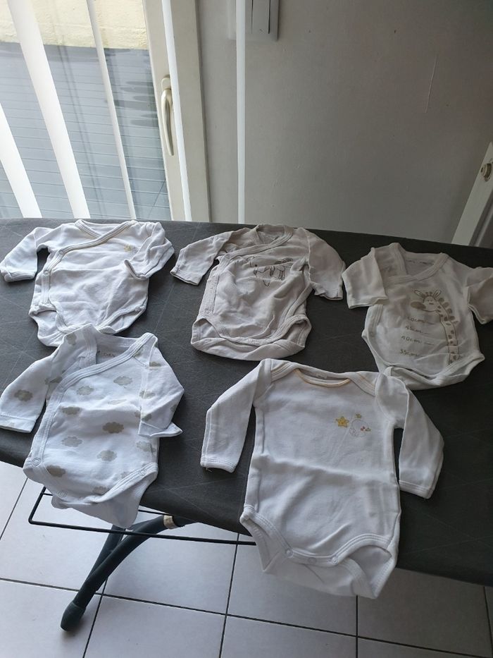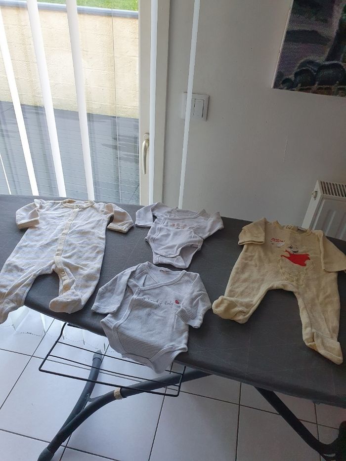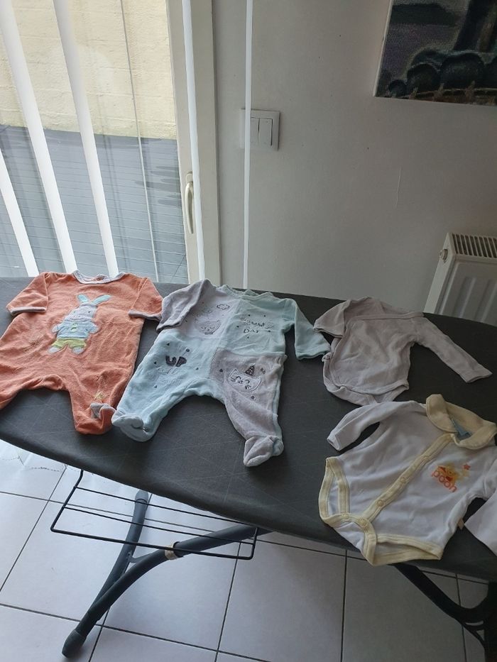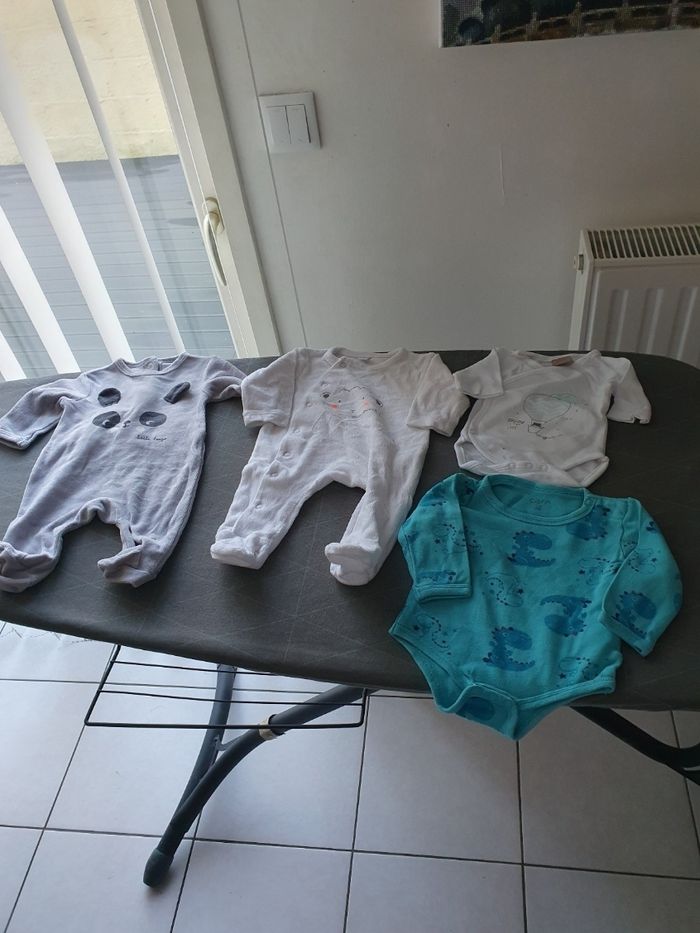 Bonjour, je vend un lot de vêtements garçon hiver Taille 0-1 mois. Voici ce que le lot contient: - 11 pyjamas - 28 body manches longues - 2 paires de chaussures - 2 paires de gants - 1 salopette pyjama - 1 gilet bleu polaire - 1 gigoteuse Vends lot complet , demandez moi le reste des photos svp. Cordialement