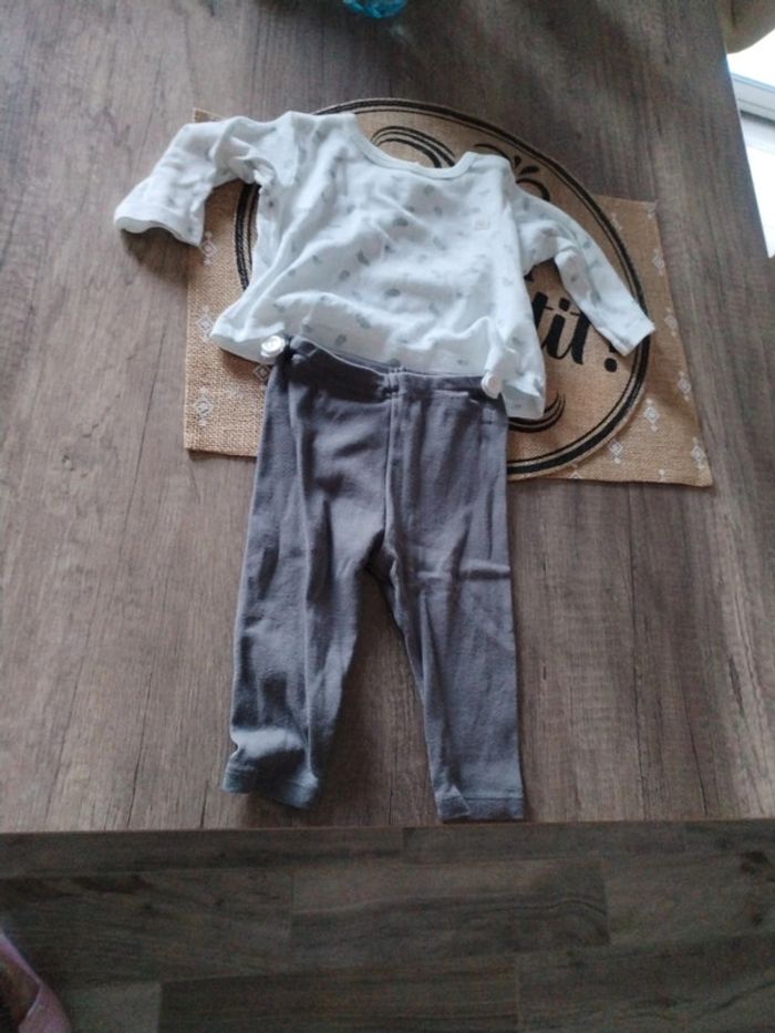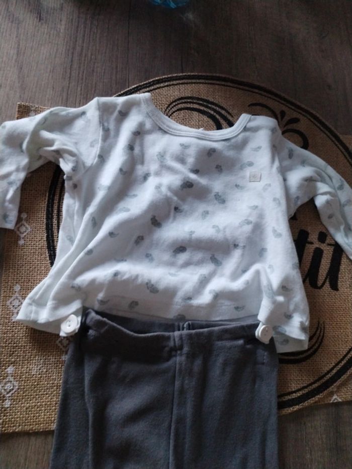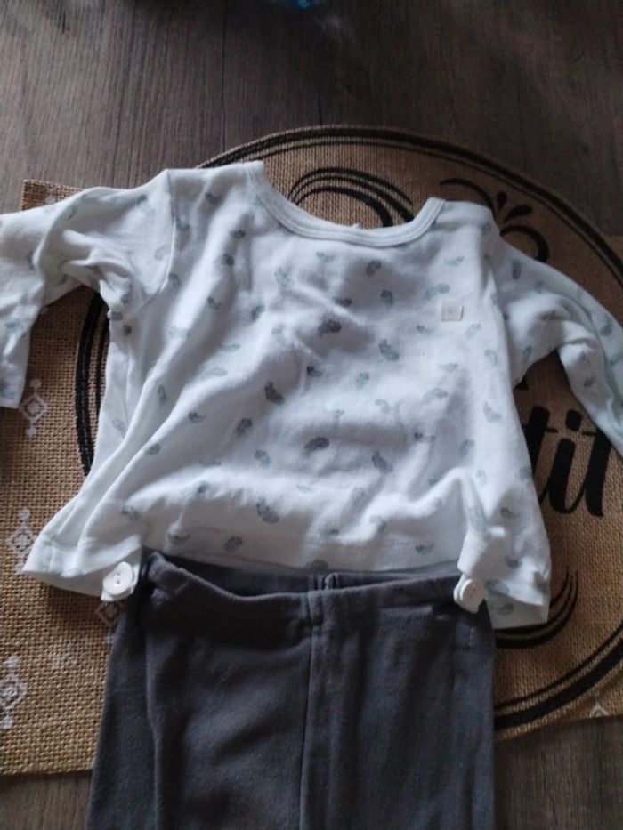 Pijamas léger 6 mois petit bâteau. Le haut et le bas s'attache avec des boutons très bon etat