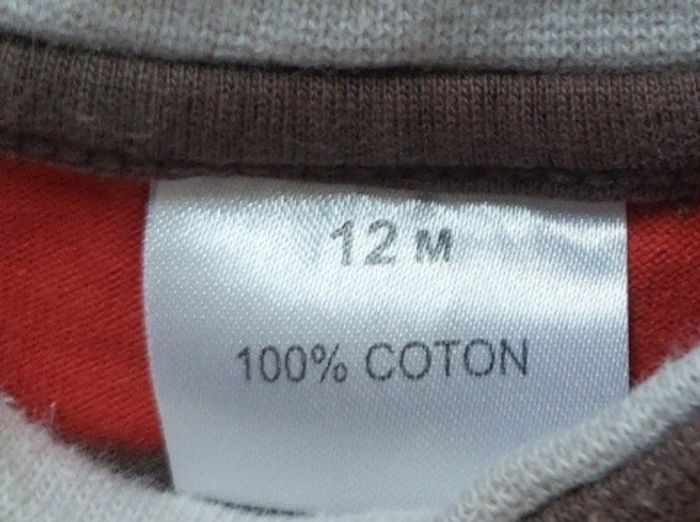 Manches longues 12 mois, Marron/corail Boutons à l'épaule 1€