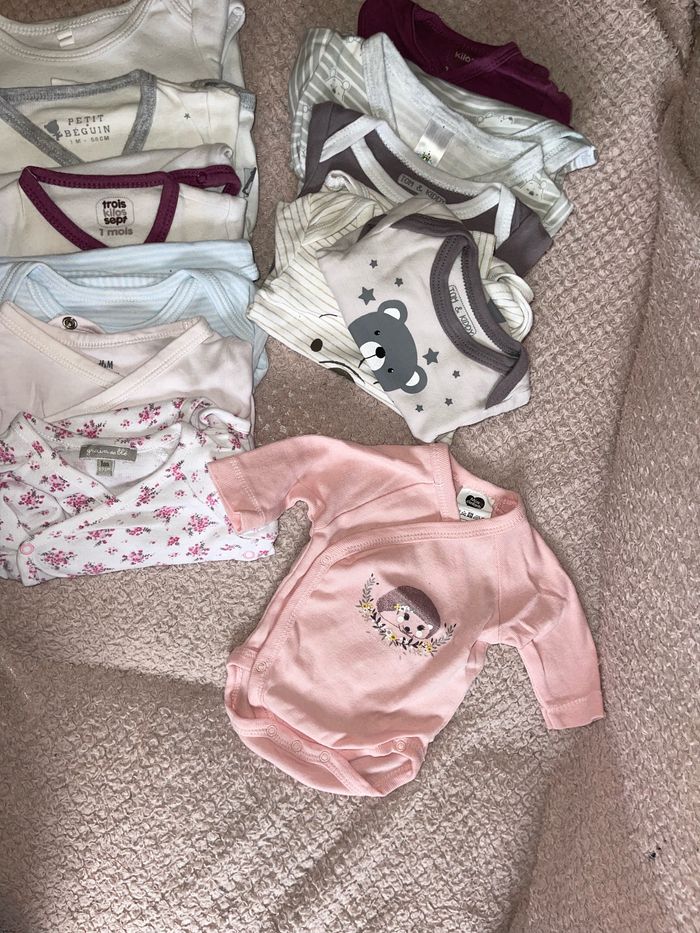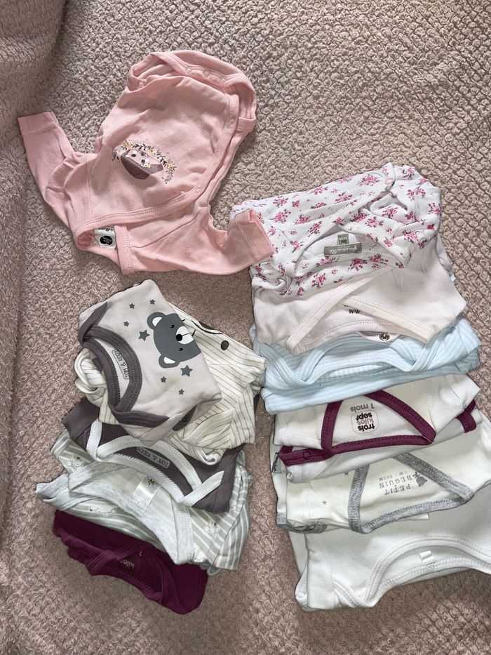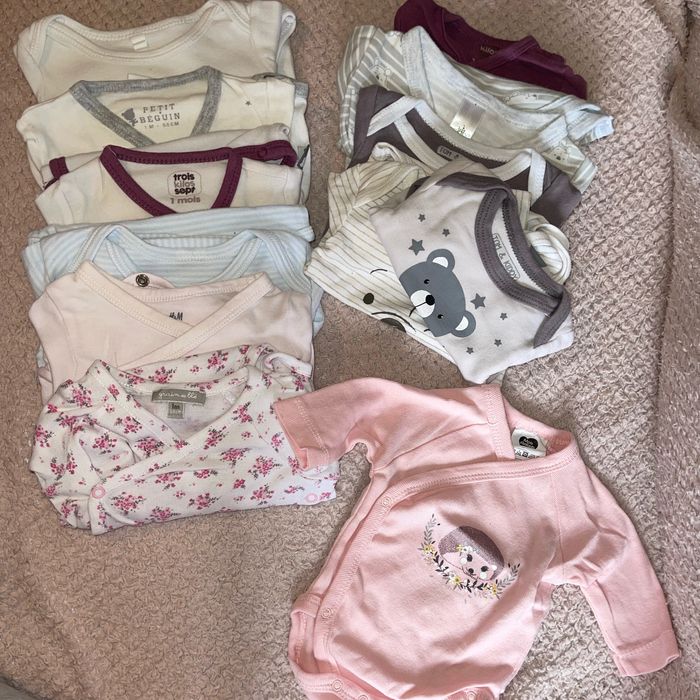 12 body 1 mois plusieur marque Disney baby, tom&kiddy, h&m, mots d’enfant, petit deguin, grain de blé