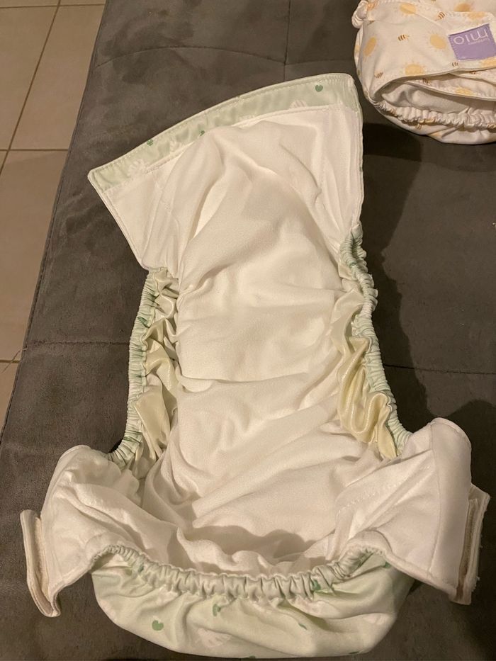 Utilisées pendant 3 mois, pas des taches Jamais de sèche linge Décrassagées avec lessive bambino mio La couche lavable Bambino Mio miosolo suprême est une couche lavable tout-en-un ultra absorbante. Composée de bambou de haute qualité, elle est parfaite pour les nuits. Elle offre une protection anti-fuites élevée et un système unique de double cœur absorbant, idéal pour les moments où vous avez besoin d'un maximum d'absorption. La couche est taille unique et évolutive, ce qui signifie qu'elle grandit avec bébé jusqu'à la propreté. 18 euros la couche