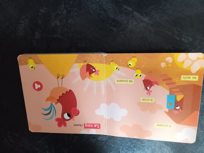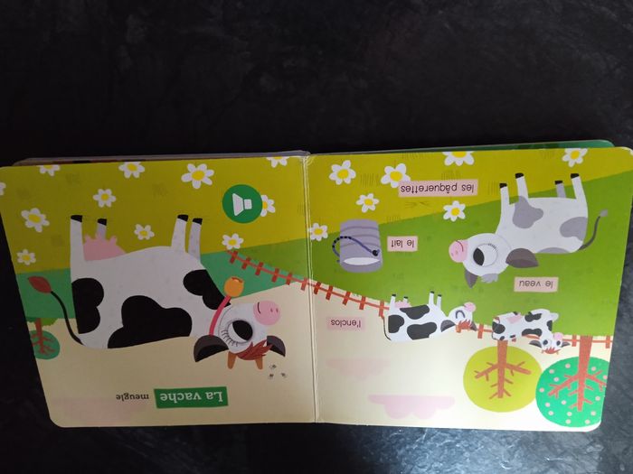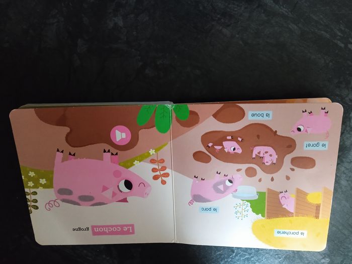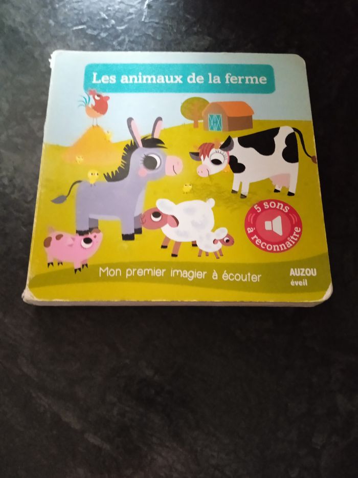 Imagier les animaux de la ferme. Édition auzou éveil. Livre page cartonnée. Présente des traces d'usure au niveau de la page de couverture sur le devant voir photos. Prévoir 3 piles LR 1130 car vendu sans piles. 5 sons à reconnaître et à écouter : le cochon, le mouton, la vache ,l'âne. #livreenfantnade3033