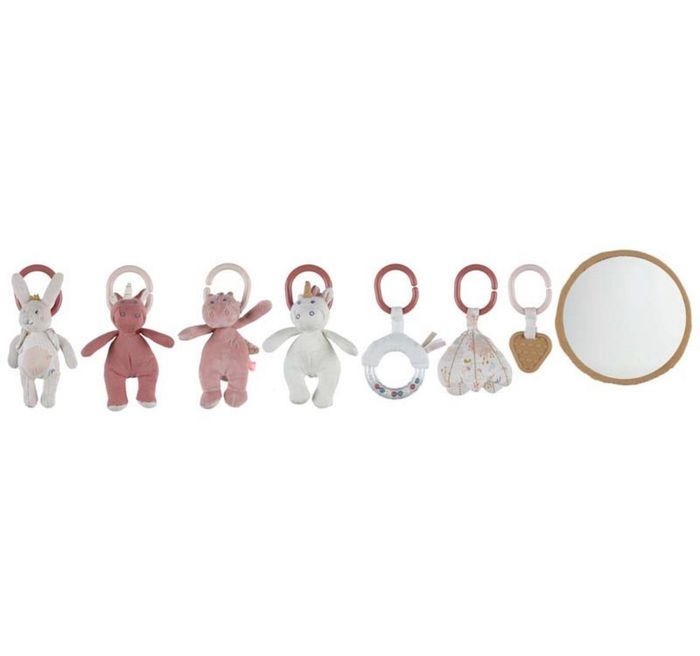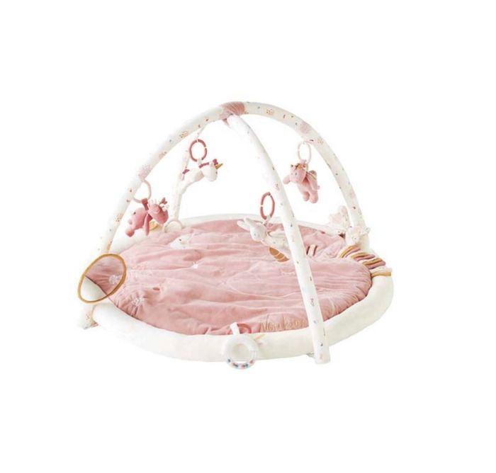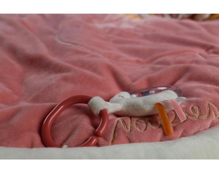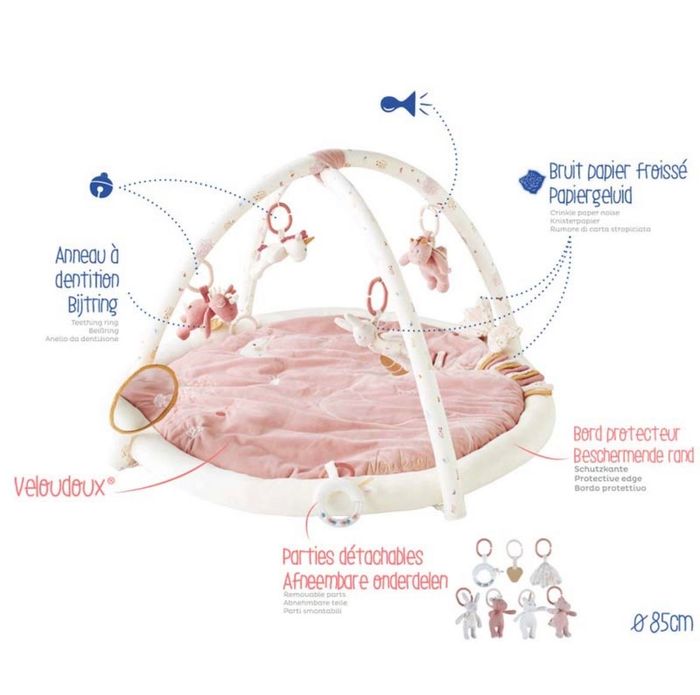Article neuf, jamais sortie de son emballage d’origine. - Le tapis d'éveil de la collection Lina & Joy est parfaitement adapté pour stimuler les sens de l'enfant grâce aux différentes matières et sons qui le constituent (miroir, pouêt et hochet). - On aime les personnages tout doux et les touches rose pâle et écru. - Les peluches peuvent être détachées lorsque bébé aura grandi. Caractéristiques techniques : Dimensions : 64x8x72 cm Composition : 100% polyester Entretien : Lavable en machine à 30°C. Pour redonner toute sa douceur et sa souplesse à la matière, l'article peut être mis dans le séchoir (programme doux). Pensez à retirer les arceaux avant entretien. Normes CE