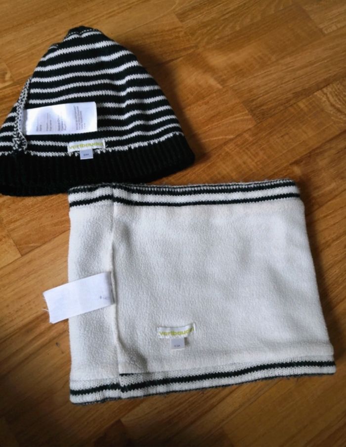 Tour de cou et bonnet noir et blanc à rayures Marque verbaudet Taille 6-8 ans En bon état 3€
