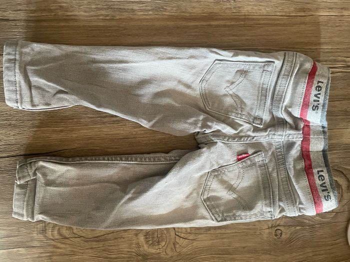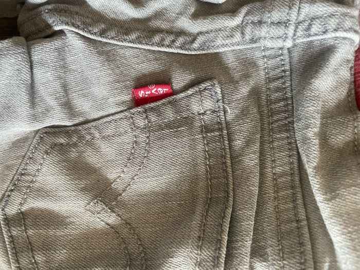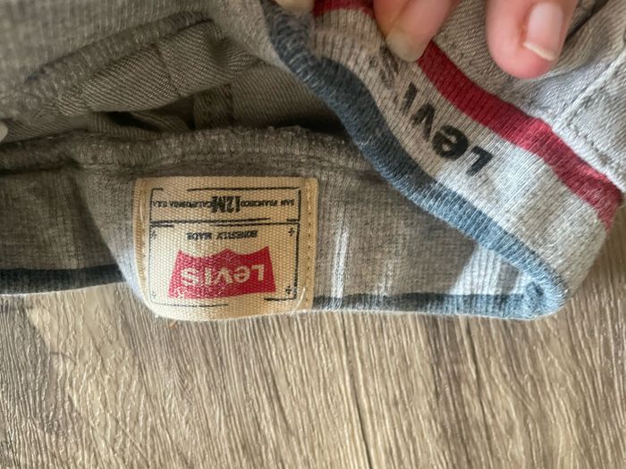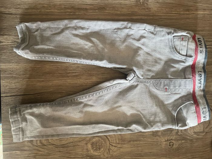 Jeans levi’s gris. Taille 12mois. En bon état. L’écriture levi’s au niveau de la ceinture s’est un peu effacé du au lavage.