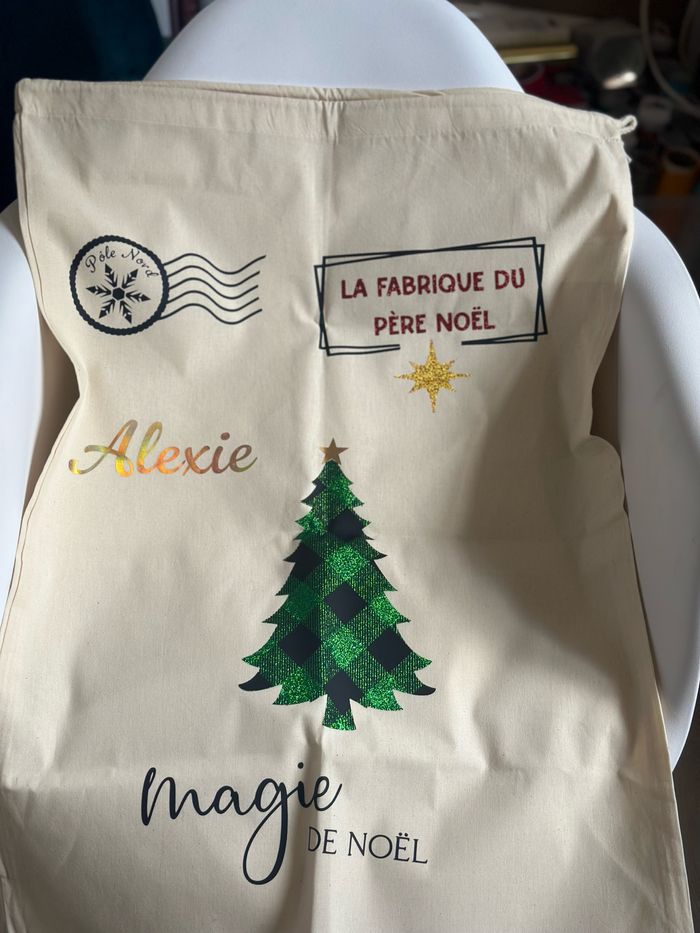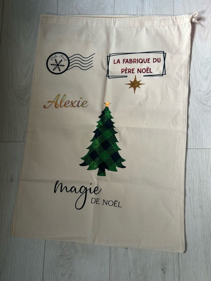 Sac de noël ou hotte de noël 🎄 100% coton 🎄 50cm de longueur/70 cm de hauteur 🎄prénom modifiable 🎄pour décoration sour le sapin de noël.et y glisser les cadeaux