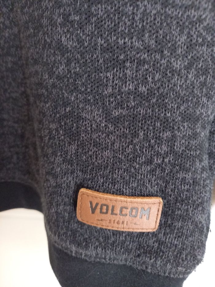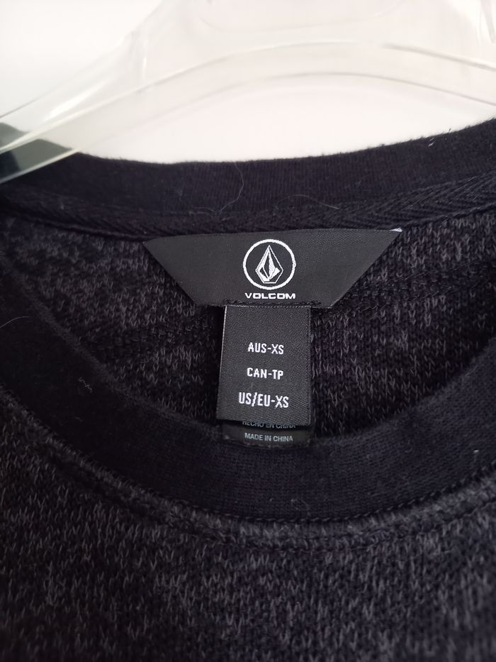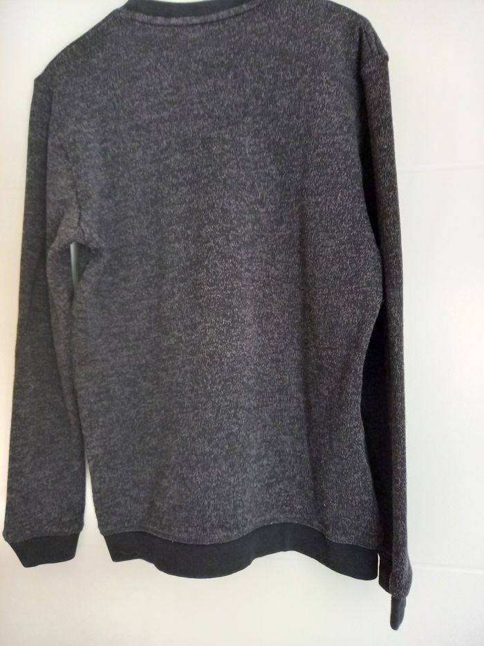 Sweat gris chiné col rond et bas des manches noir coton et polyester marque Volcon