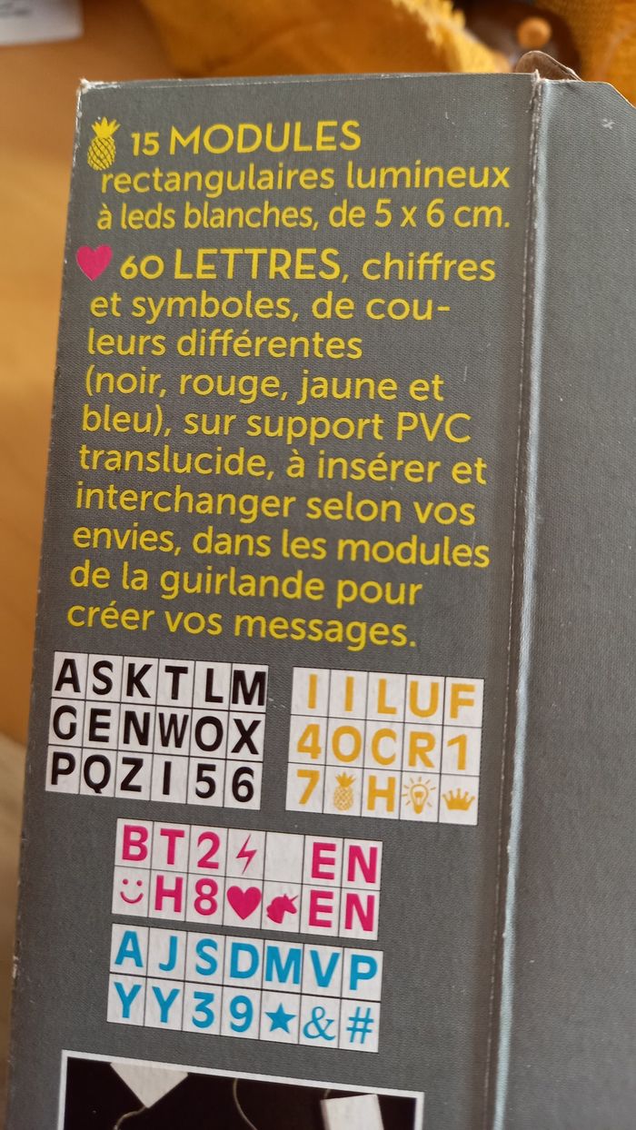 Guirlande lumineuse à message personnalisé 60 chiffres et lettres ou symboles de couleurs différentes longueur 180 cm
