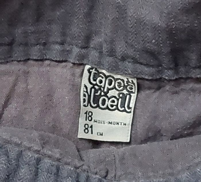Salopette 18 mois, tape à l'œil Gris foncé, doublé intérieur coton Epais Fermeture bretelles 2 positions Pressions à l'entre jambe 2€50