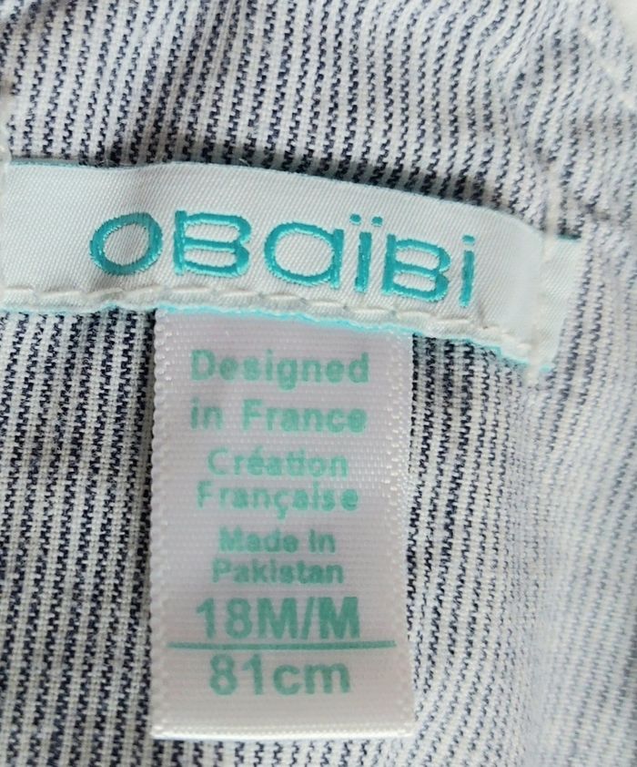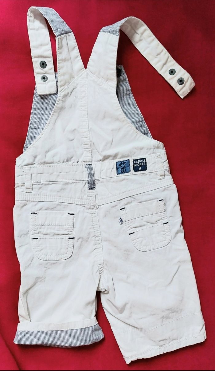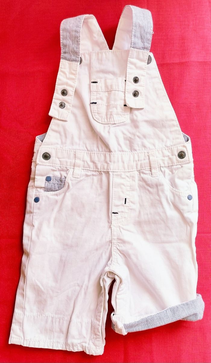 Salopette short 18 mois, obaïbi Blanc Fermeture bretelles 2 positions Boutons pression Petit plis en bas motif 2€50