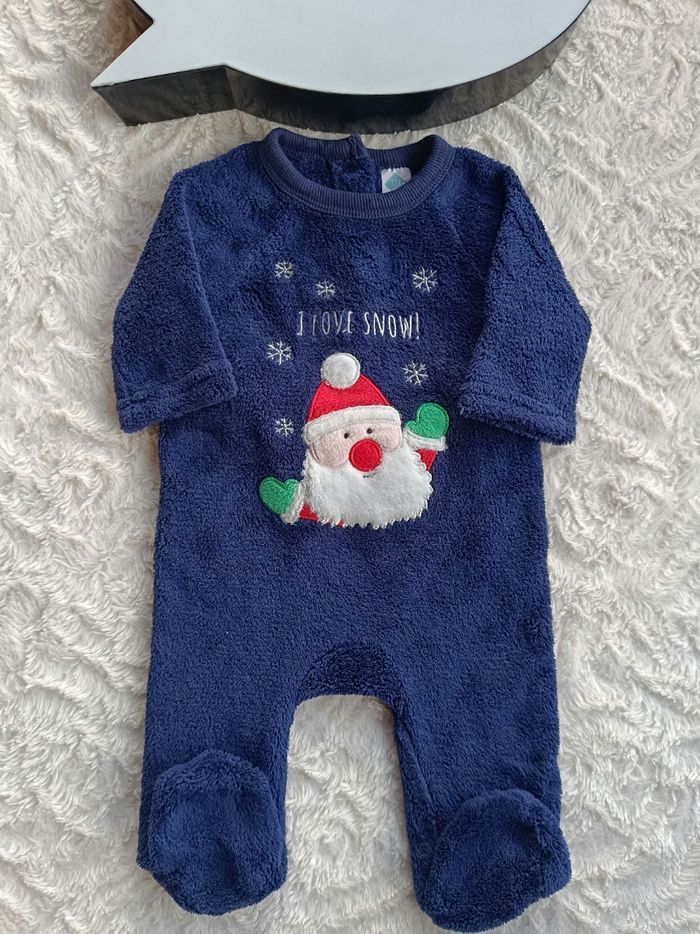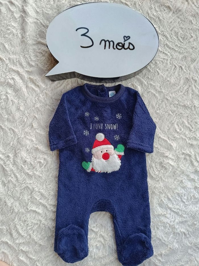 Pyjama grenouillère velours Garçon 3 mois I love snow Père Noël neige TEX Baby - photo numéro 1