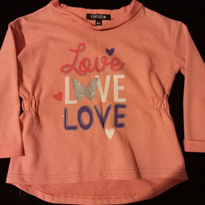 T-shirt pour enfant 4 ans, en très bon état couleur corail, manches longues, marque : punkidz