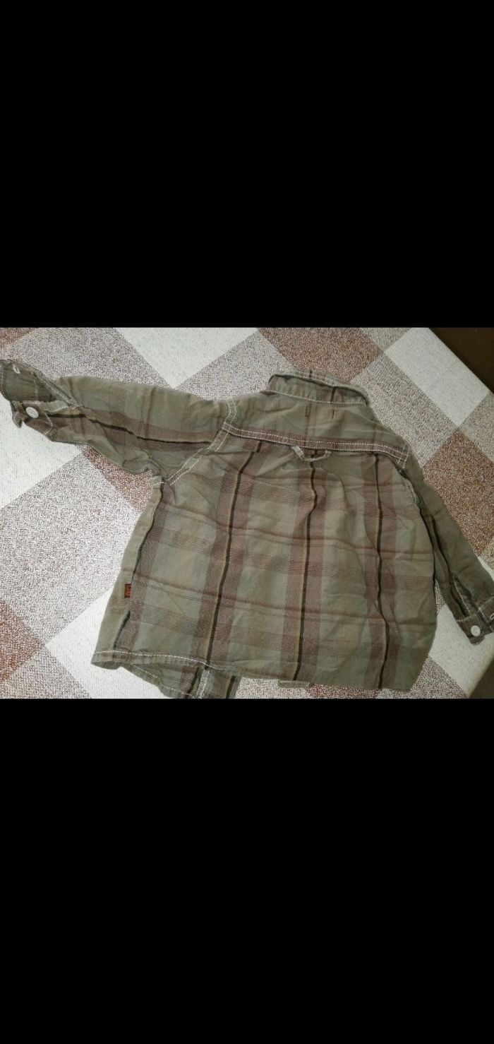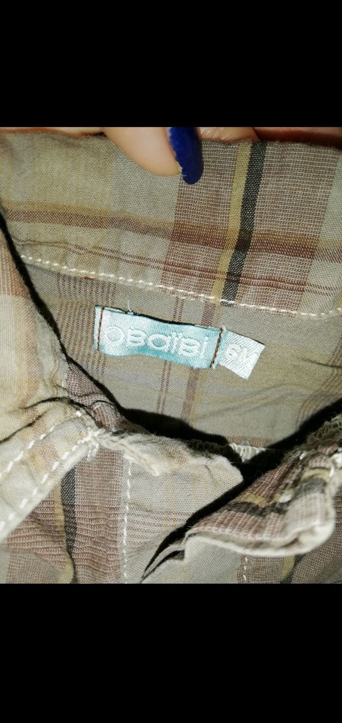 Chemise 6 mois manches longues à carreaux kaki/marron obaibi