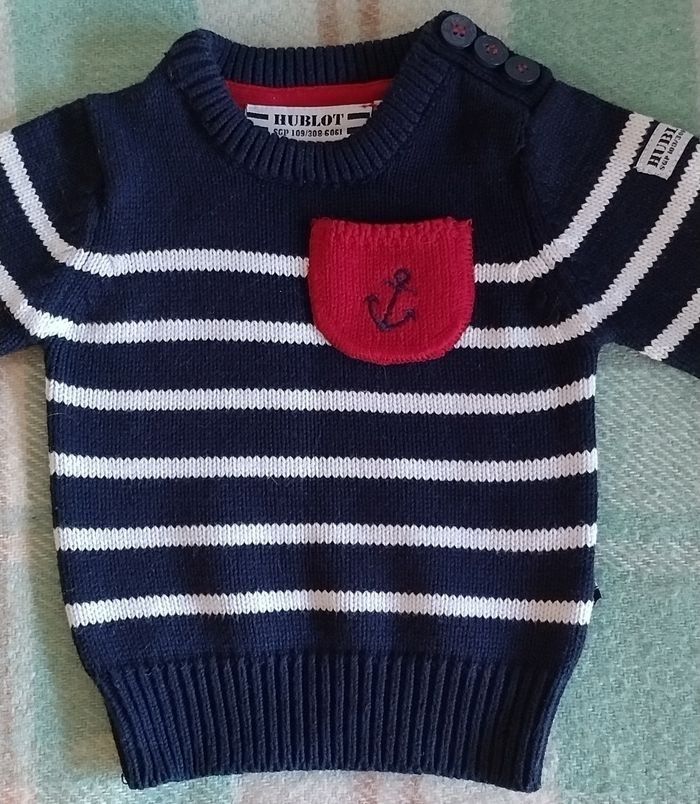 Joli petit pull marin HUBLOT pour un bébé de 3 à 6 mois