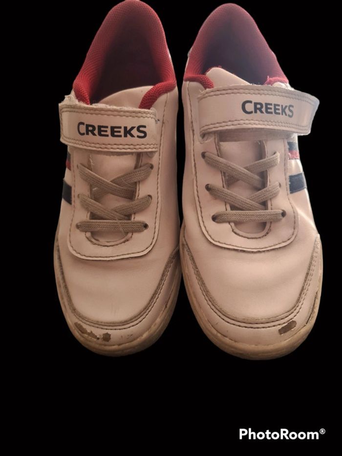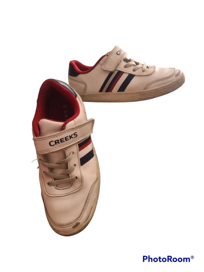 Baskets Creeks taille 32 Porté 3 fois mais devant éraflé Sinon le reste bon état Taille 32 Vendu dans sa boîte d'origine valeur 24.99€ #savannahmarsbasketsgarçon32
