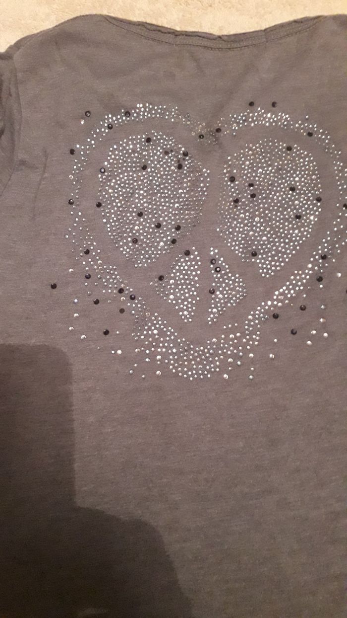 Tee shirt col en V petits boutons . marque Bérénice. Motif coeur dans le dos avec brillants