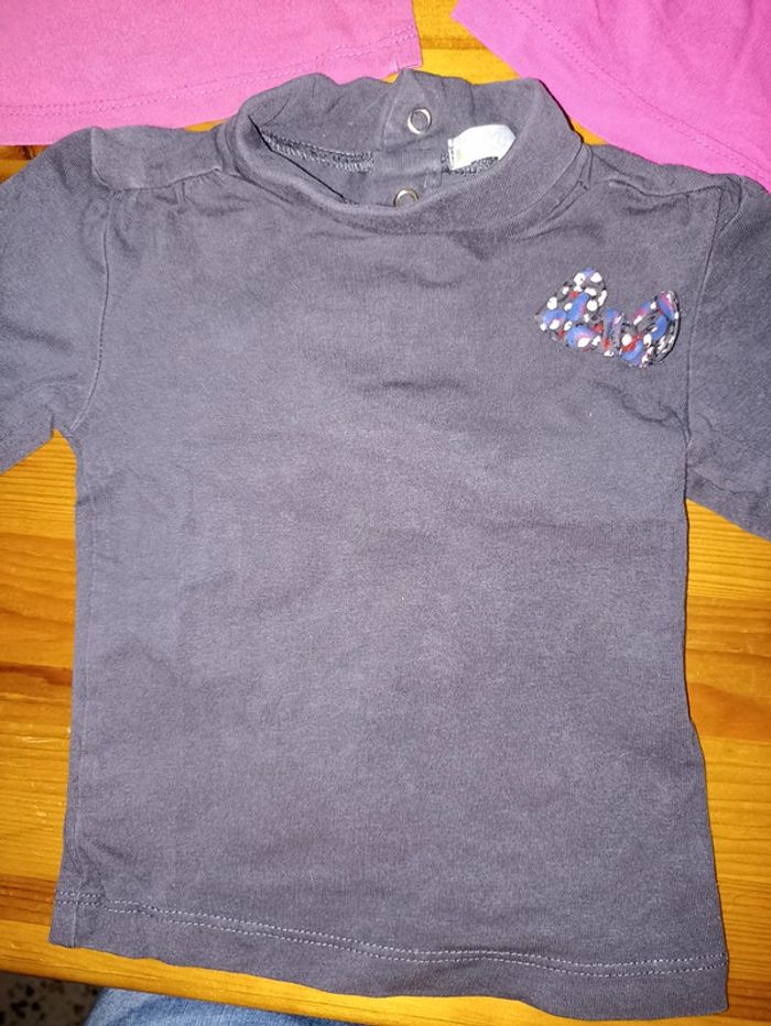 1 col roulé, les 3 sont manches longues, 1 rose avec noeud sur l'épaule, 1 rose avec noeud devant et le gris a un noeud devant aussi