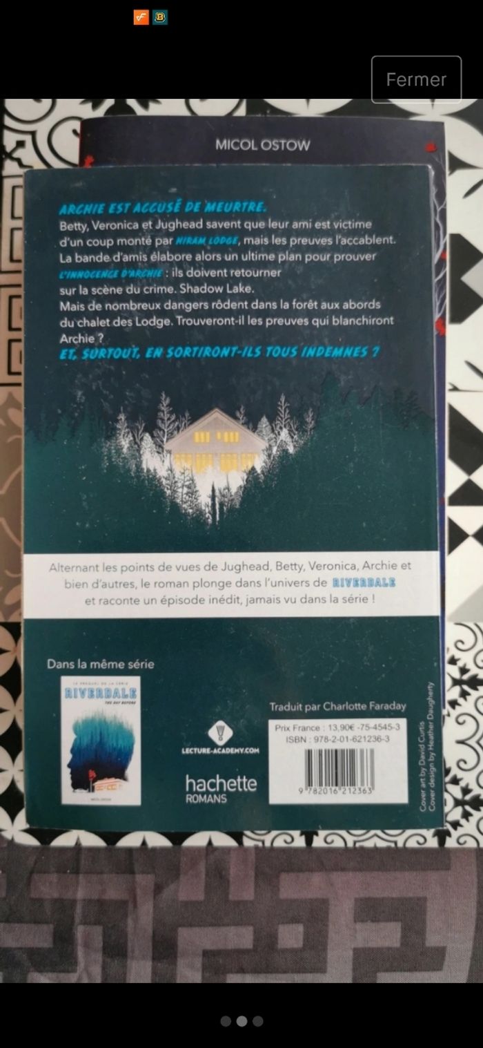 Livre Riverdale très bon état, juste à poser quelque chose dessus pour qu'il ne soit plus tordu