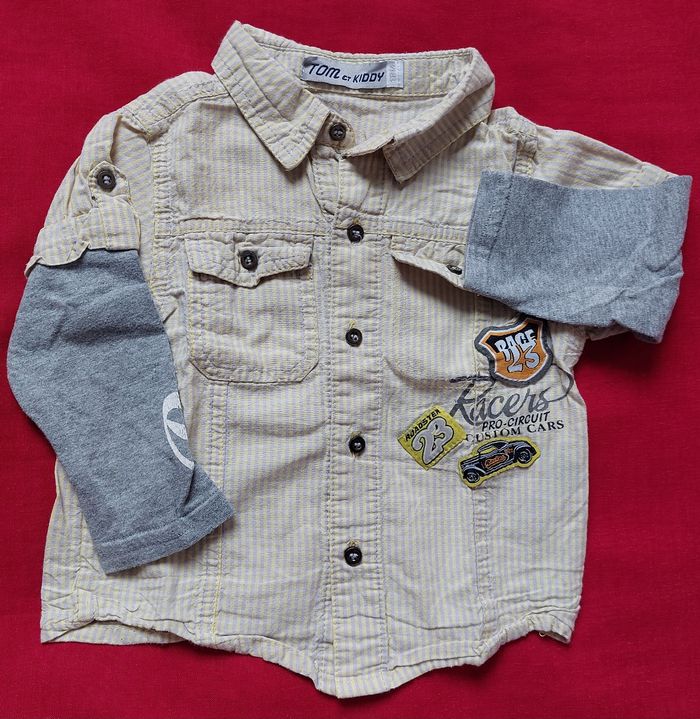 Chemise manches longues 18 mois, Tom et kiddy Jaune et gris, en coton Fermeture à boutons 2€