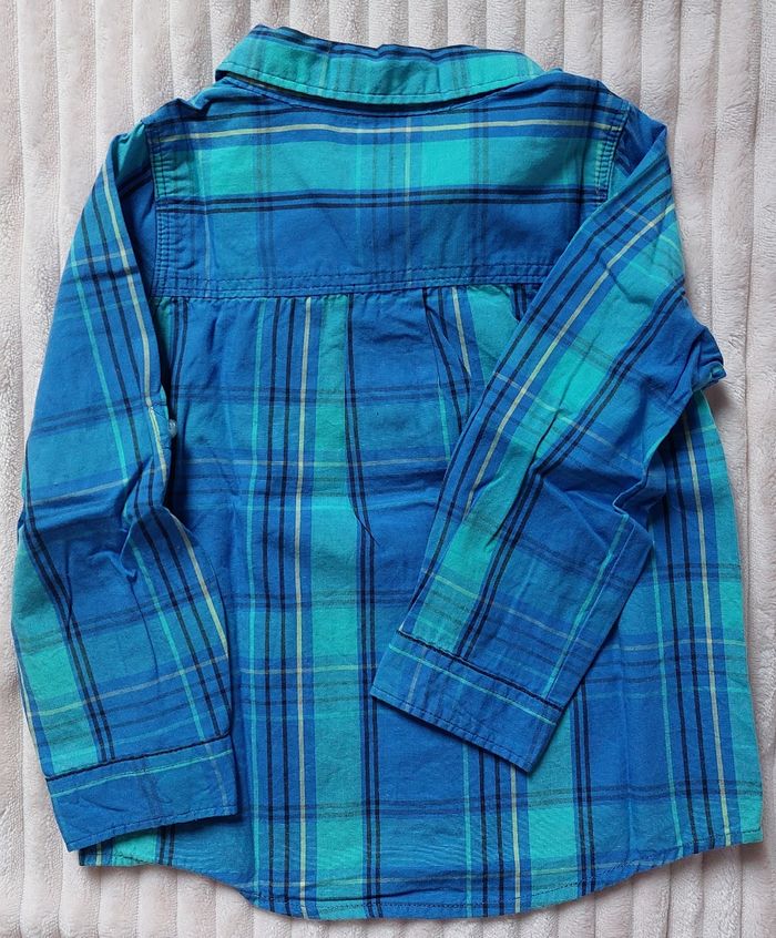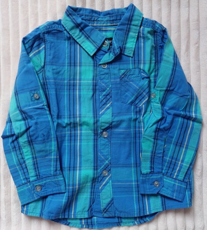 Chemise manches longues 18 mois, 86 cm, in extenso Bleu et vert, en coton Fermeture à boutons 2€