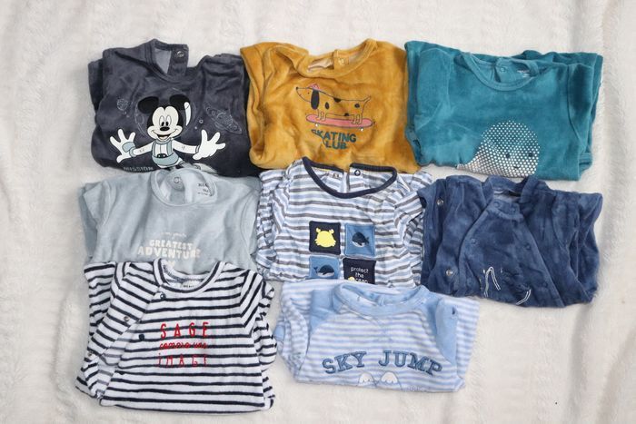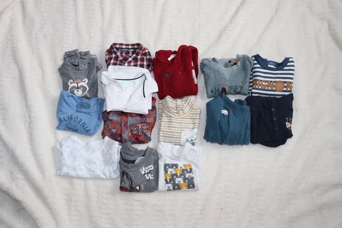 Lot de vêtements en six mois 19 pantalons 6 gilet /pull 8 pyjamas 21 T-shirt manches courtes /longues 2 body 1€ par pièce
