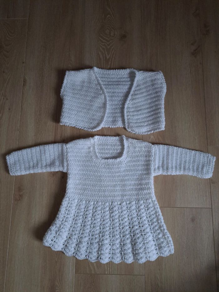 Robe et bolero chaude en laine. Sans marque sans taille mais correspond environ à du 9 mois. Juste lavé