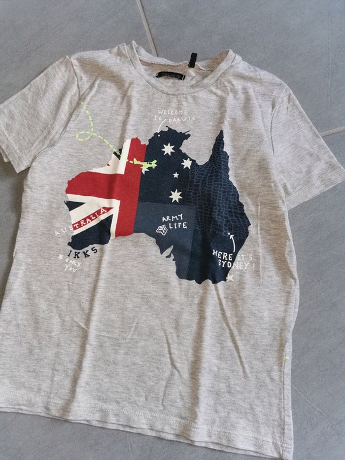 Joli. Tshirt gris avc touche de fluo Marine léger passé 4ans