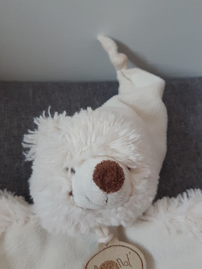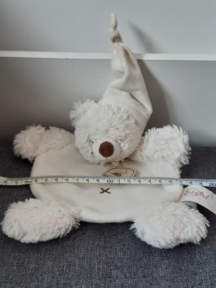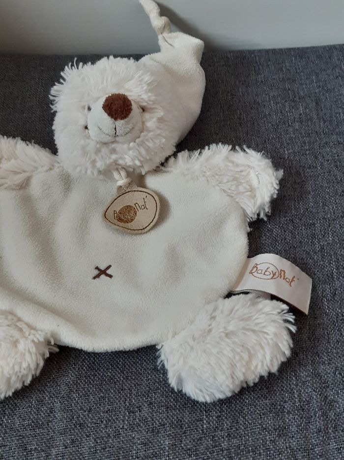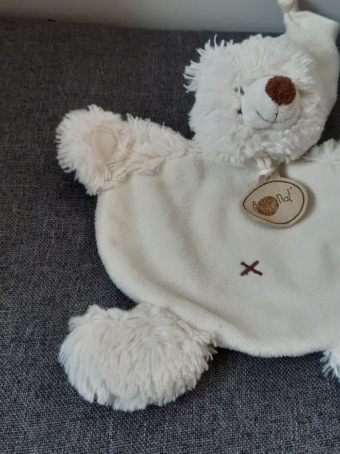 Peluche Doudou plat Ours ourson blanc Baby Nat D'autres photos possible sur demande Merci de privilégier les envois par Mondial Relay