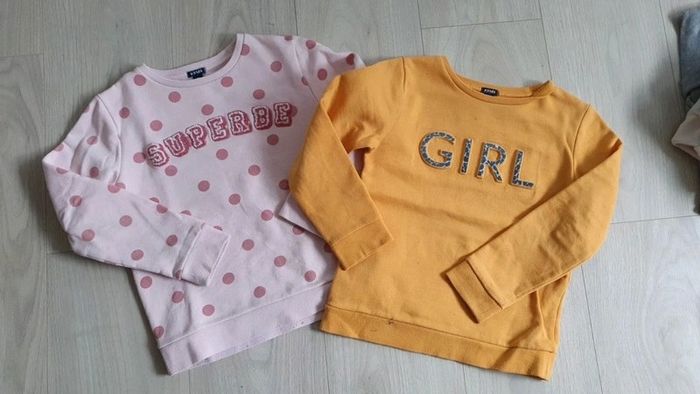 Pulls état satisfaisant Le jaune à quelques taches de feutre sur le bas 8 ans Kiabi J'applique des réductions sur les lots 😊 et ma grande fille en a encore beaucoup dans l'armoire donc n'hésitez pas si vous cherchez d'autres articles 😉
